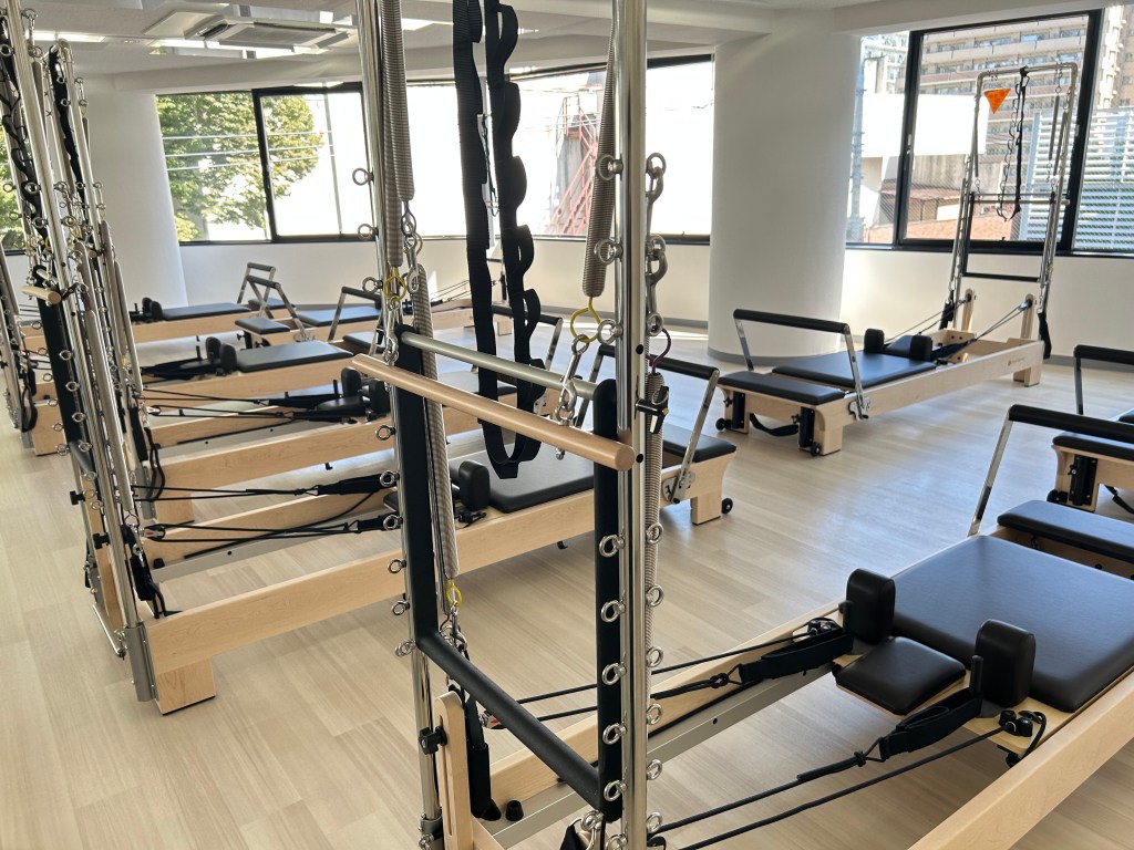 ピラティスマシンの「リフォーマー」と「タワー」を使用します。